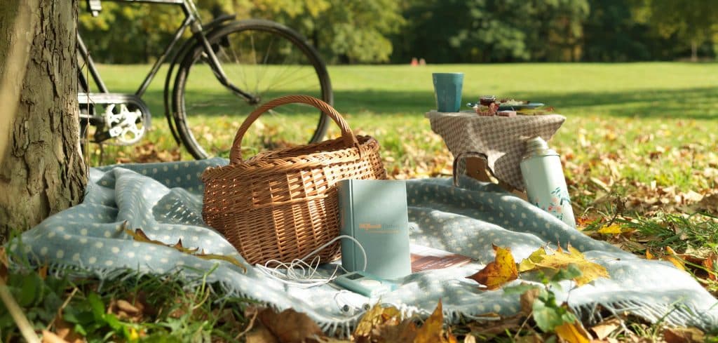 - Une enceinte nomade ou un téléphone avec playlists pour une bande-son qui colle à l’ambiance, ou même improviser une petite séance danse sur l’herbe après le repas.
