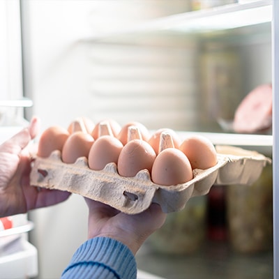 - Rangez-les dans leur boîte d’origine, sur une étagère centrale du réfrigérateur, plutôt que dans les porte-œufs souvent placés sur la porte, où la température varie sans cesse.
